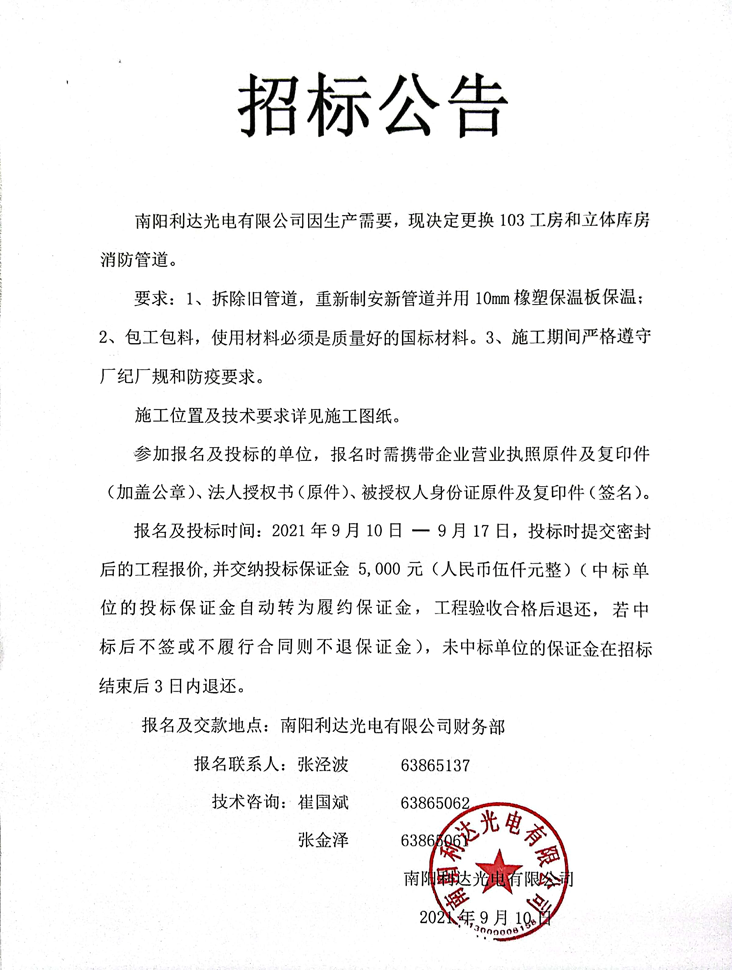 - (2022-09-29)光電新區三期廠(chǎng)房一層裝修施工的招標公告