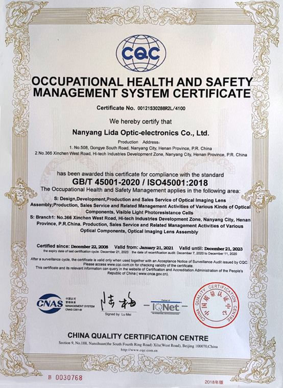 職業(yè)健康安全管理體系認證證書(shū)(英文)